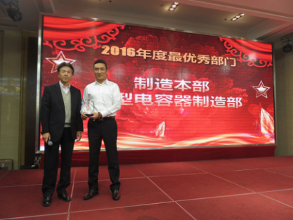 製造本部小型コンデンサ製造部は2016年最優秀部門賞を取りました。(周濤本部長が代理受賞)