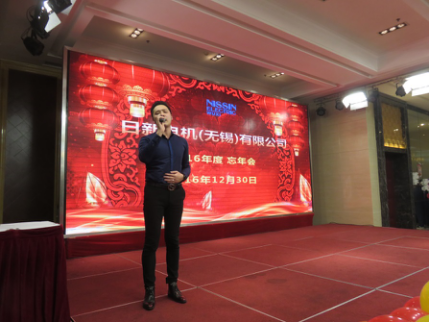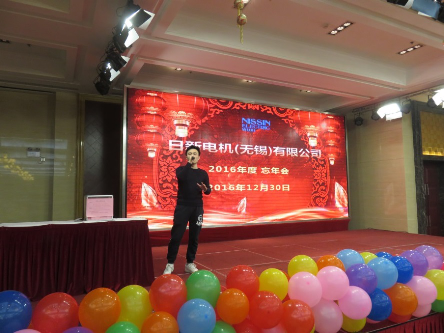 製造本部の盛波さんは「香吻留给心上人」を歌って、今年の忘年会演出を円満に終わりました。