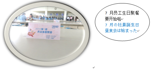 誕生日の福祉を高めて、社員に会社の人間本位の価値観を一層感じさせて、会社の団結力を向上するために、7月から毎月初めての稼働日に当月に誕生した社員を誕生日昼食会がを始めました。社員が誕生日のお祝いを感じられるように、会社は社員に人気の日本食のお弁当を用意して、食堂で誕生日の歌を放送しました。